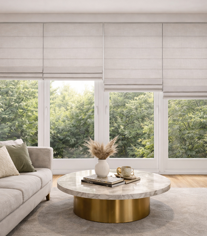 If you prefer a brighter room while still maintaining privacy, we also offer lighter and sheer Roman blinds. These allow natural light to enter while reducing glare and providing additional privacy.